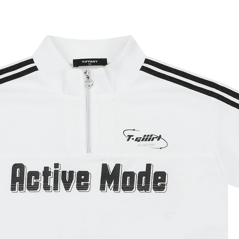 반집업 스타일의 아이보리 티셔츠로 밑단안쪽으로 스판스트링이 있어 조절이 가능하며 가슴에 유니크한 나염이 포인트인 아이템입니다.