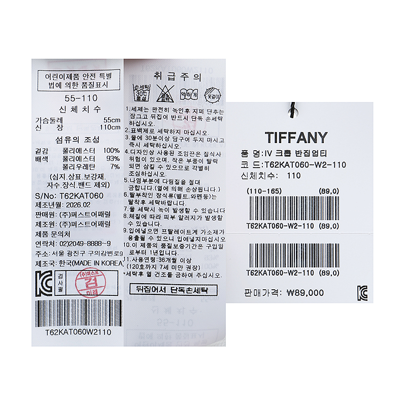 겉감 : 폴리에스터 100 배색 폴리에스터 93 폴리우레탄 7 -