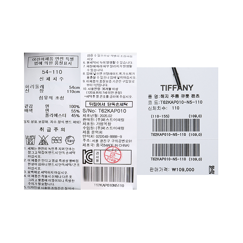 겉감 : 면 100 배색 면 55 폴리에스터 45 -