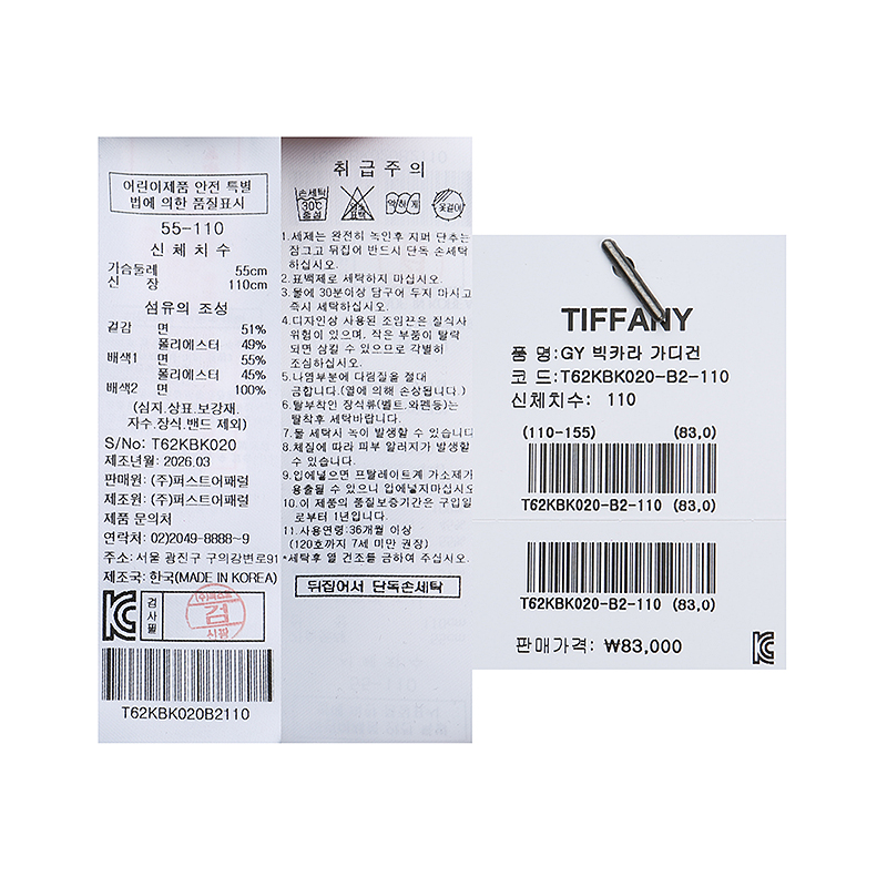 겉감 : 면 51 폴리에스터 49 배색 1 면 55 폴리에스터 45 배색 2 면 100 -