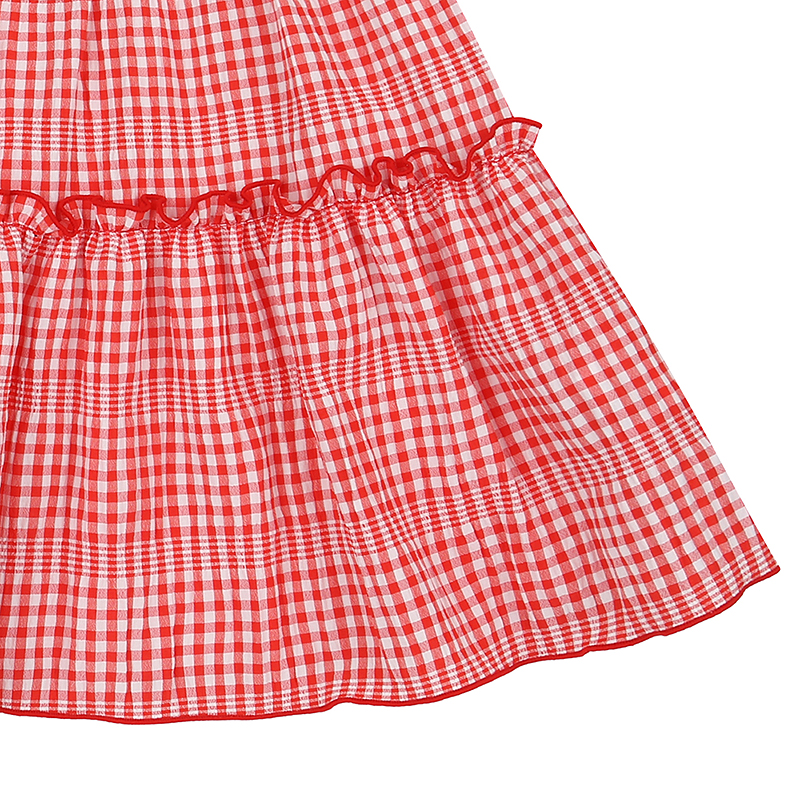 -지지미 체크 원단에 하트와 장식 리본 디테일이 더해져 러블리한 무드가 느껴지는 아이템입니다.