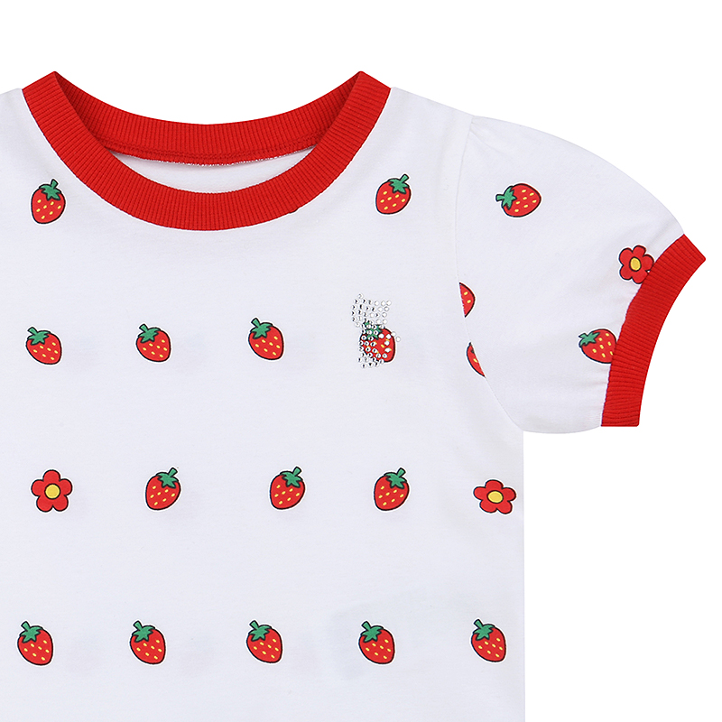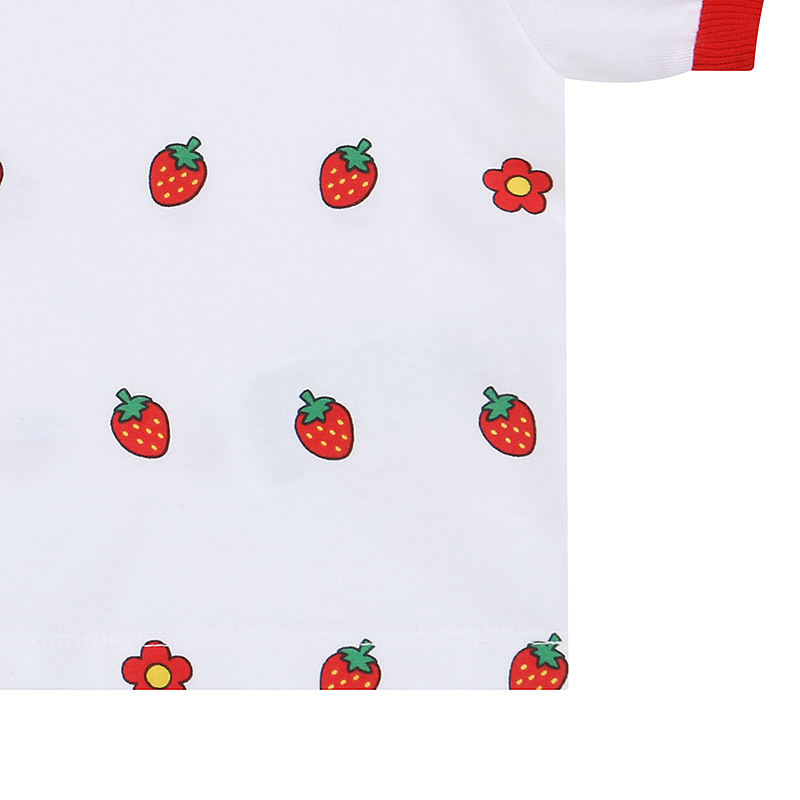 -깨끗한 화이트 바탕에 앙증맞은 딸기와 레드 플라워 패턴이 가득 채워져 있는 TS