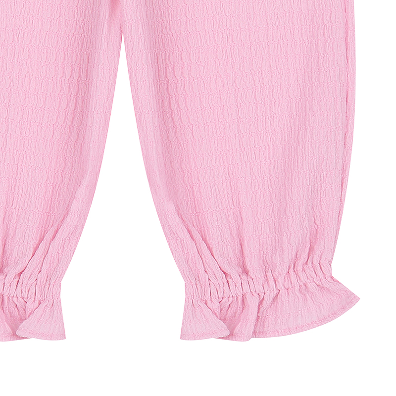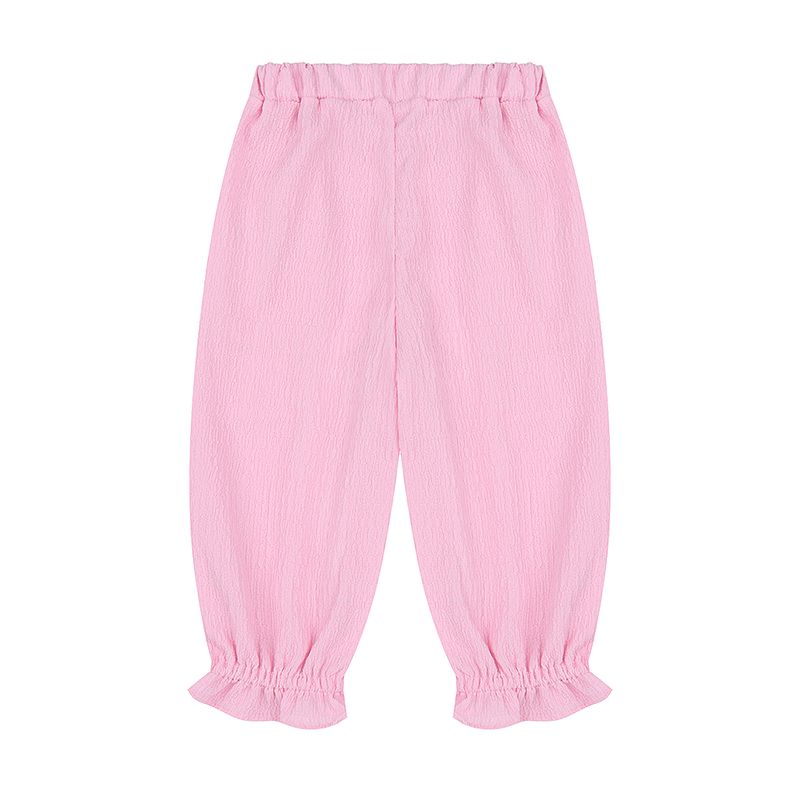 찰랑하고 말랑한 착용감이 좋은 원단의 조거라인의 팬츠입니다. PK 프릴 요루 TOP과 함께 사랑스러운 셋업 연출을 해보세요.
