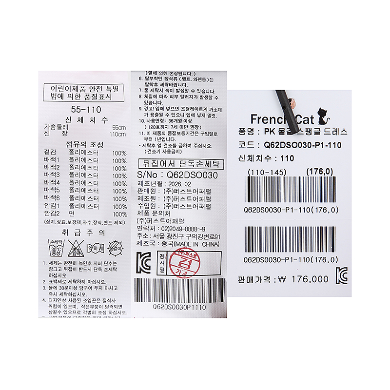 겉감 폴리에스터100배색1-6 폴리에스터100안감1 폴리에스터100안감2 면100 -