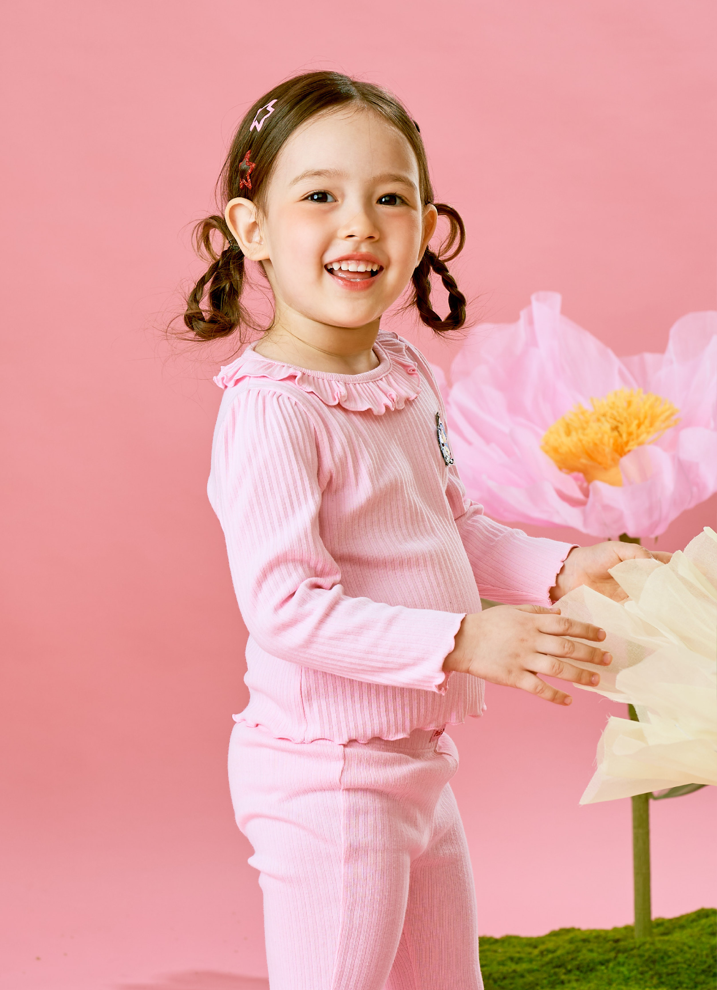 핑크 프릴 골지 T
