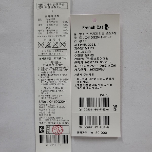 - 배송, 주문/결제, 취소/반품/교환/환불, 회원, 쿠폰/적립금, 이벤트 등의 자세한 문의사항은 고객센터 > 1:1 문의를 이용하여 주시기 바랍니다. 상품에 대한 궁금하신 내용을 문의해주세요.