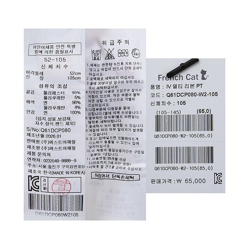 겉감 폴리에스터95 폴리우레탄5배색 면96 폴리우레탄4안감 면100