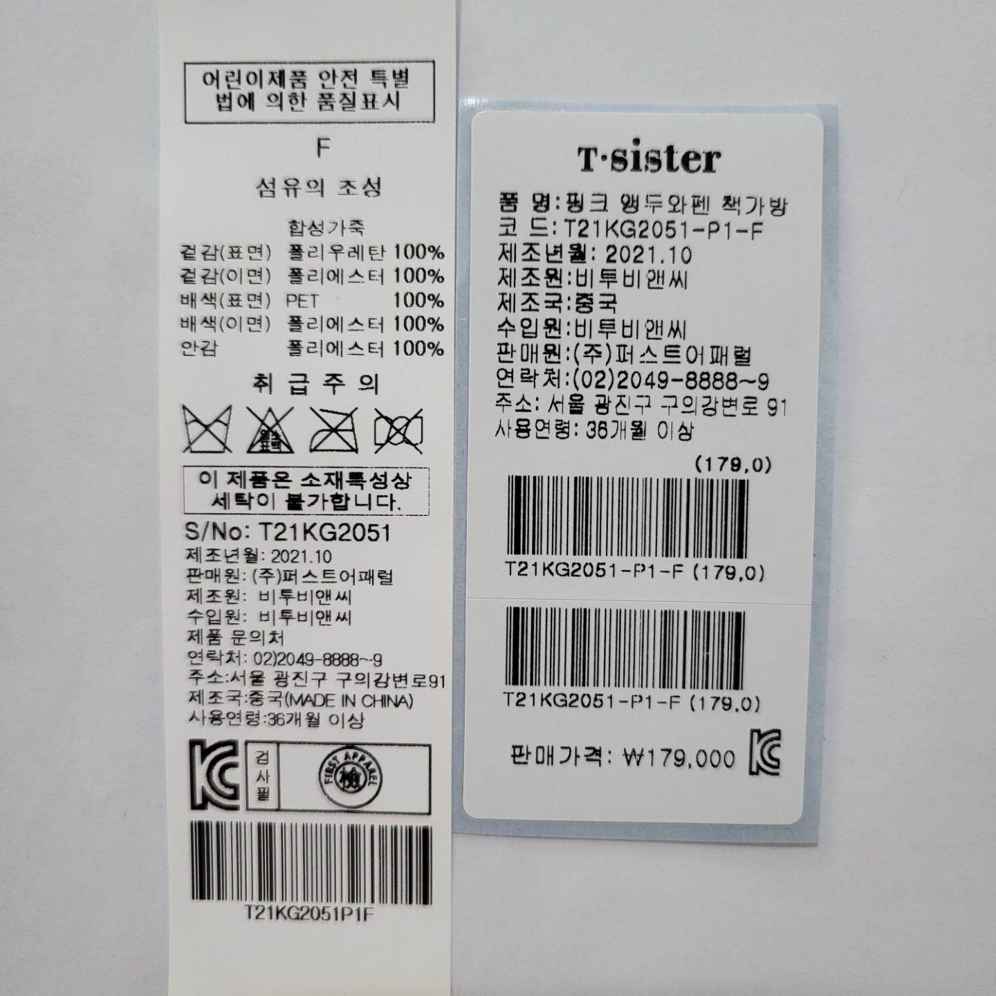 (합성가죽)겉감: 표면 폴리우레탄 100 이면 폴리에스터 100배색 표면 PET 100 이면 폴리에스터 100안감: 폴리에스터 100 -