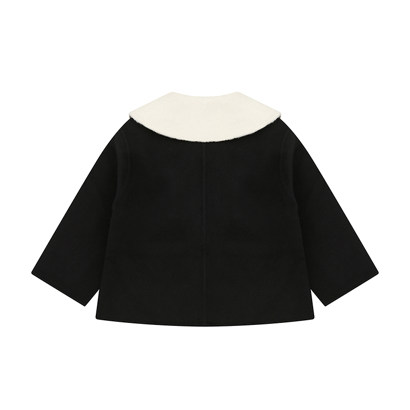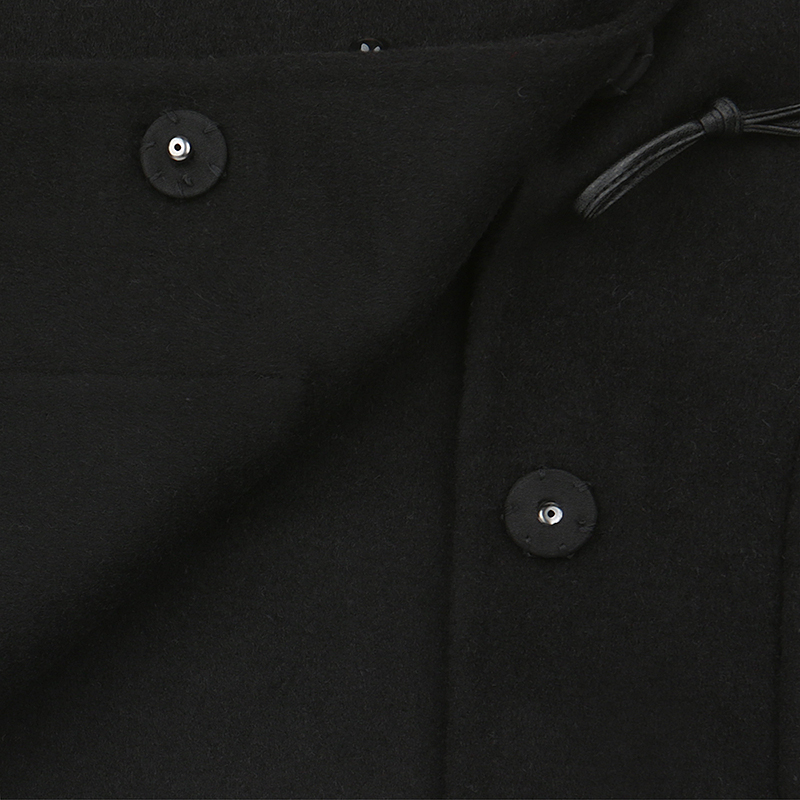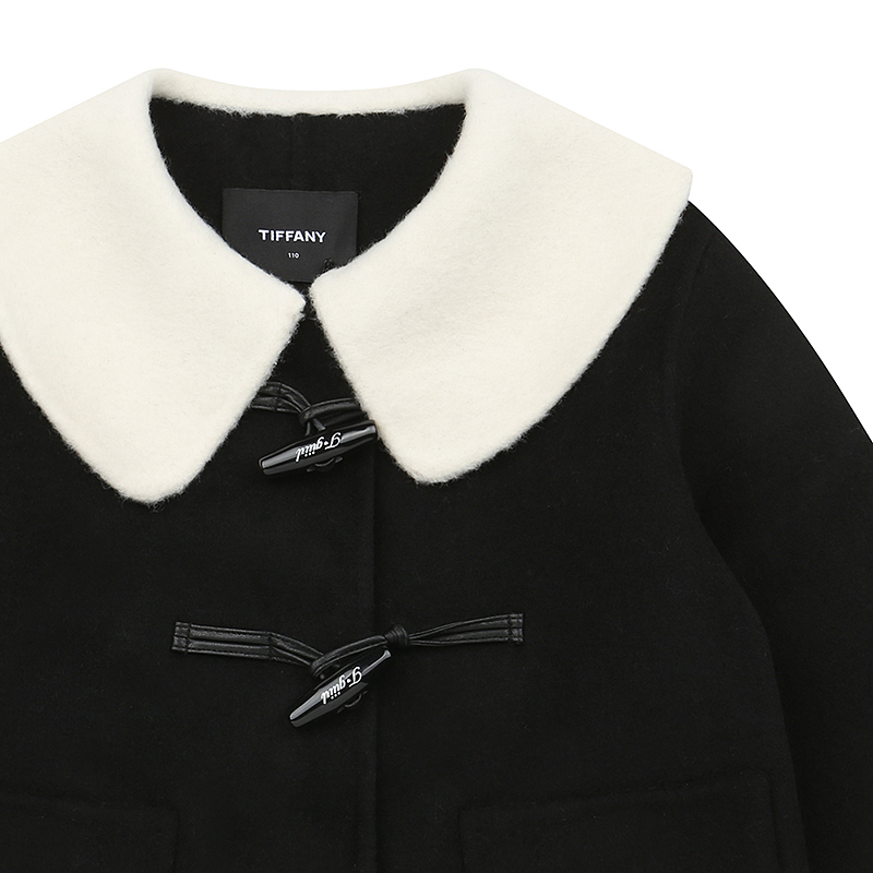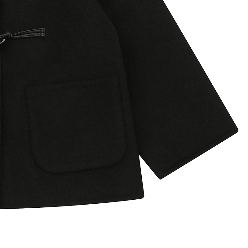 깔끔한 블랙핸드메이드 코트로 카라가 아이보리로 되어있으며 멋스러운 토글장식으로 여밈이 되어있습니다.