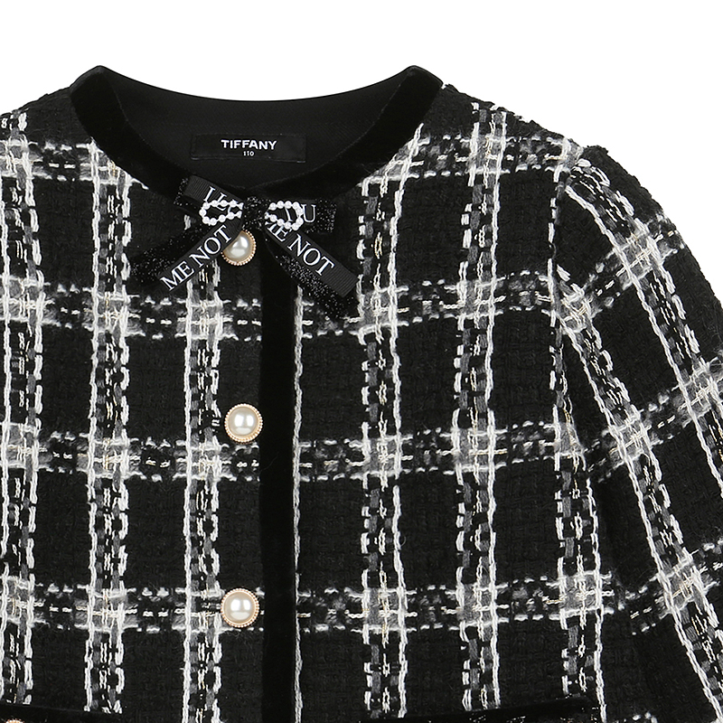 블랙트위드 자켓으로 벨벳배색으로 한층 포인트를 더해주는 디자인과 고급스러운 트위드장식과 탈부착브로찌로 포인트를준 아이템입니다.(SET-T55KAS010)