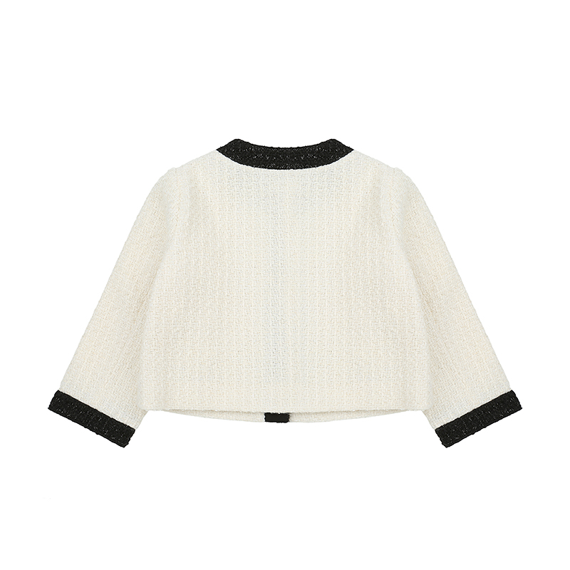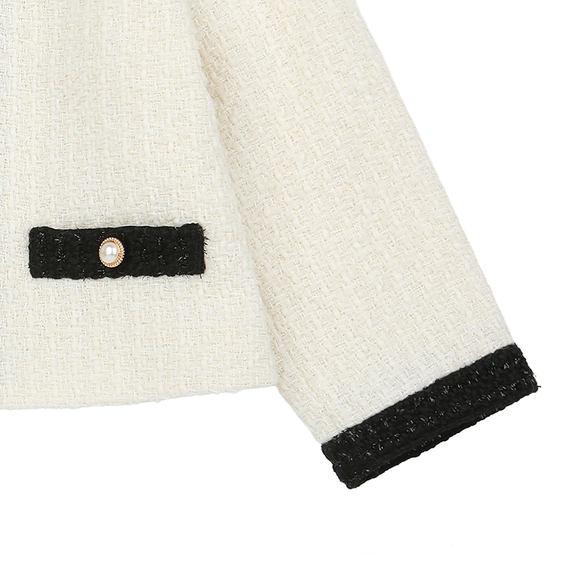 아이보리 트위드 자켓으로 블랙트위드배색으로 한층더 고급스러움이 더해진 스타일쉬한 자켓으로 탈부착브로찌가 같이 구성되어있으며 원피스나 스커트를 같이 코디하시면 좋습니다.