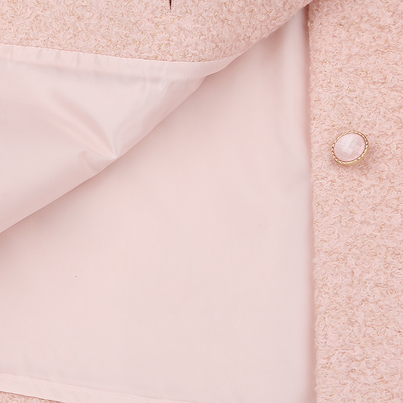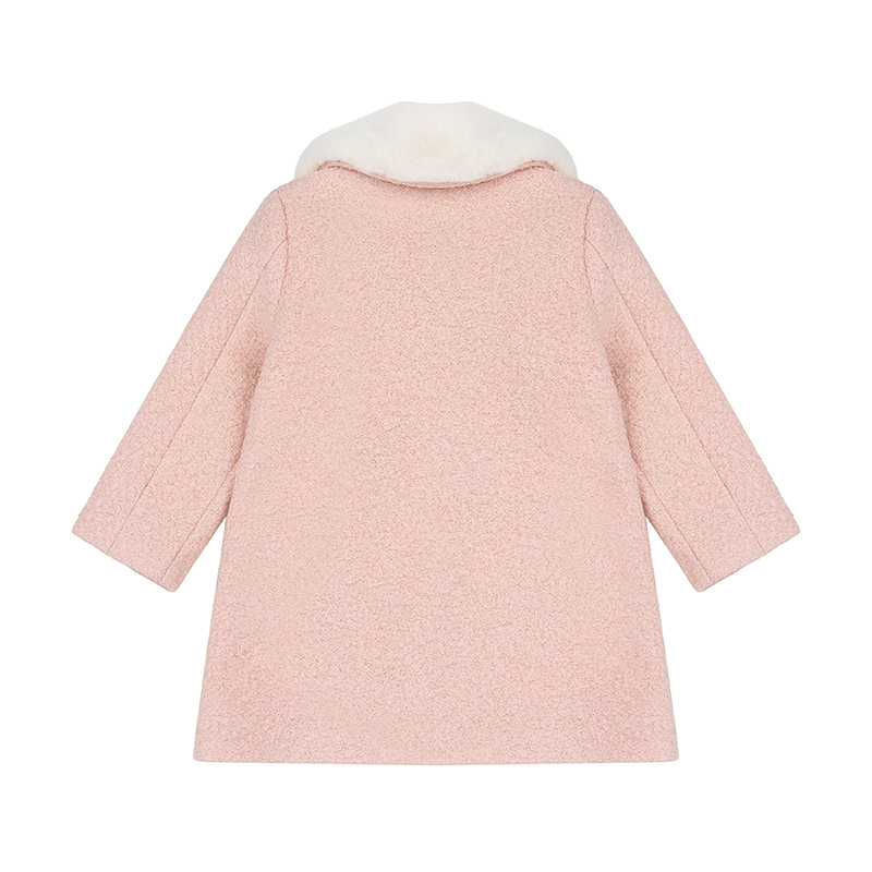 은은한 펄감이 있는 코트로 아웃포켓과 털방울 장식으로 포인트를 준 코트입니다. 아이보리 털카라 장식으로 따듯해 보이는 스타일입니다.