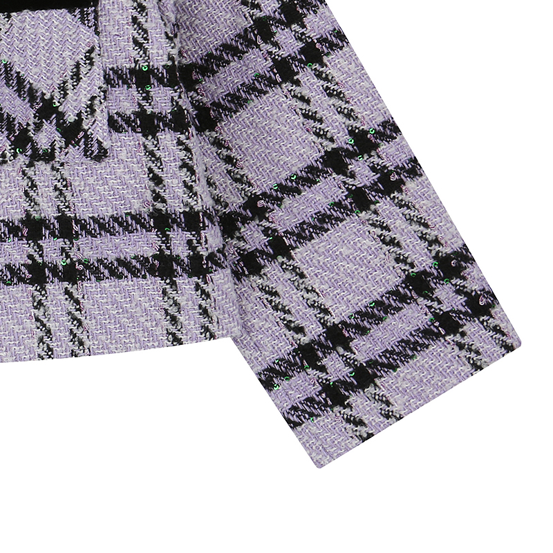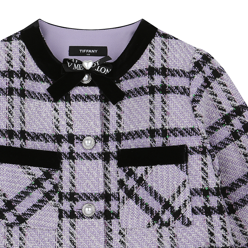 큰 라인의 트위드 패턴을 사용한 자켓으로 벨벳을 배색으로 주어 깔끔한 스타일로 연출할 수 있는 스타일입니다. 안쪽에 패딩 퀼팅을 넣어 보온성을 올여 주었습니다. SET SK와 코디하여 시즌 상품으로 코디하기 좋은 스타일입니다.