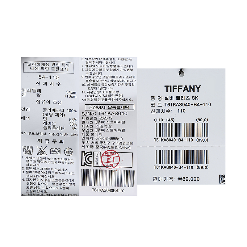겉감 : 폴리에스터 100(코팅제외) 배색 면 58 레이온 38 폴리우레탄 4 -