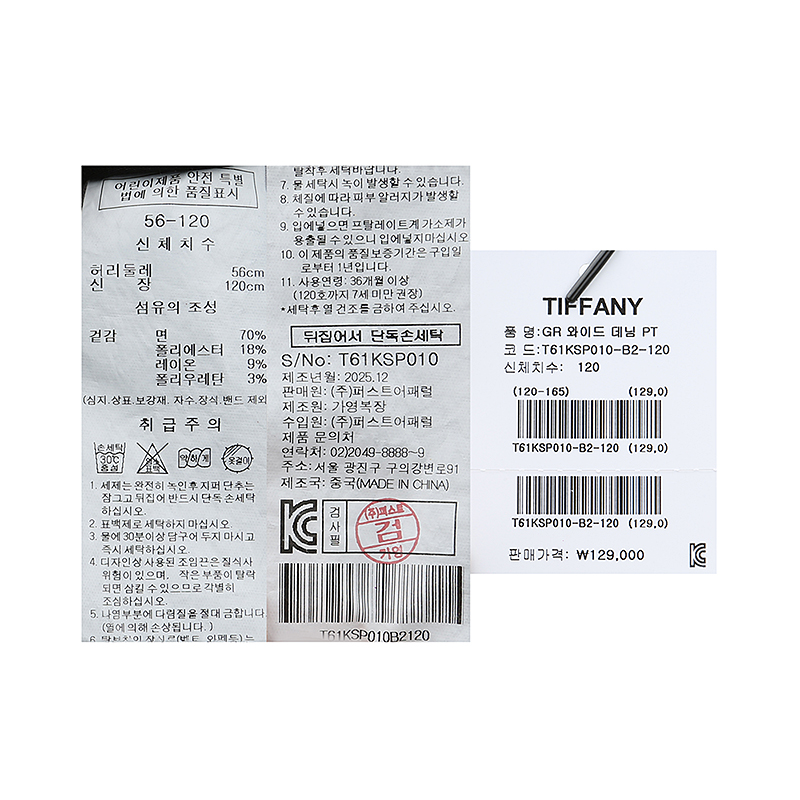 겉감 : 면 70 폴리에스터 18 레이온 9 폴리우레탄 3