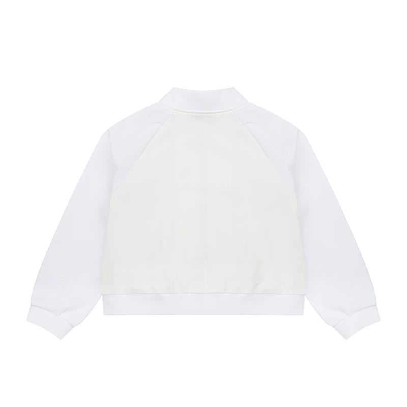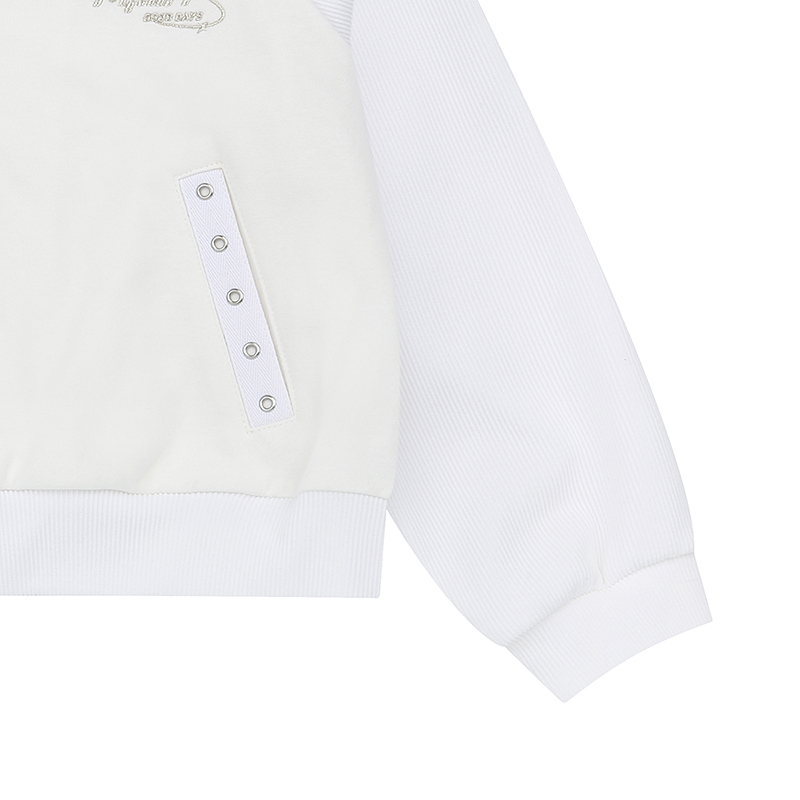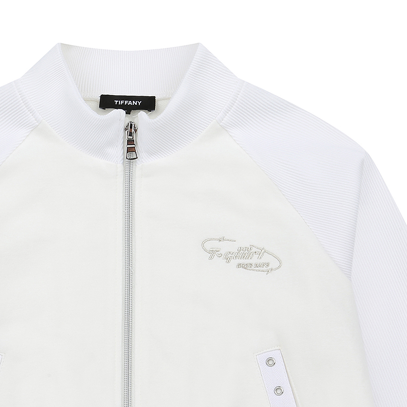2단 쭈리 소재와 골지 배색을 포인트로 준 집업 JP입니다. 라글란 소매 스타일로 슬림한 라인의 집업 JP로 주머니에 아일렛 TAPE 장식으로 포인트를 주었습니다.