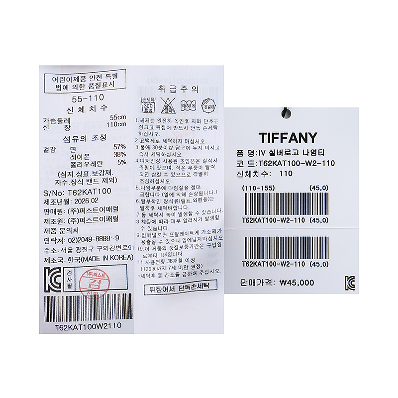 겉감 : 면 57 레이온 38 폴리우레탄 5 -