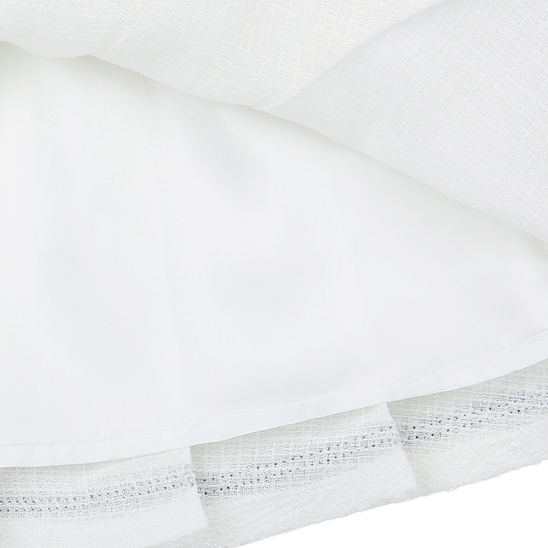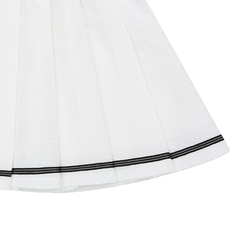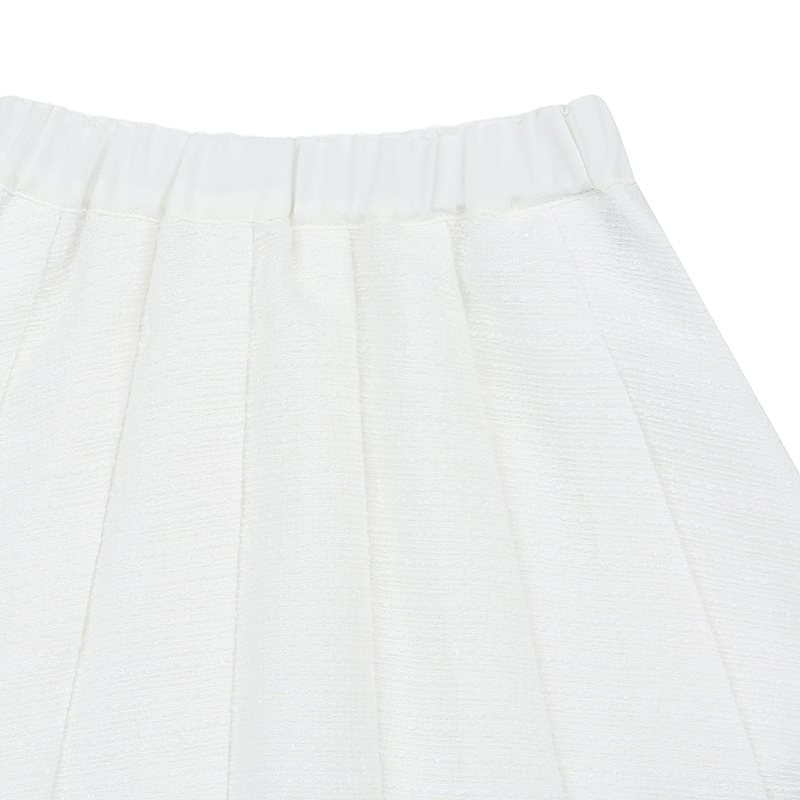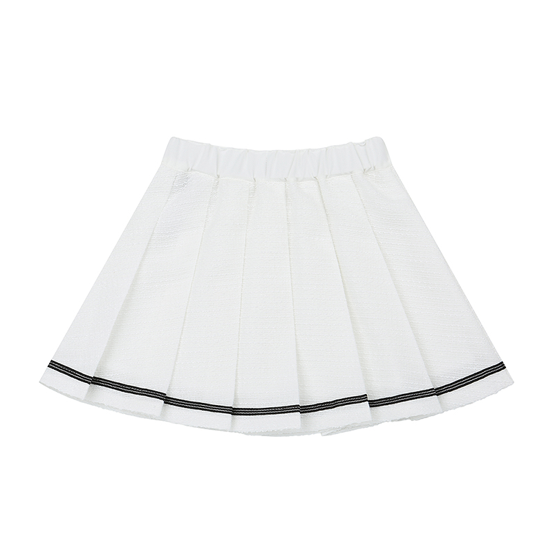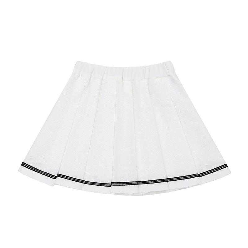 깔끔한 아이보리 주름스커트로 블랙실버 TAPE 를 덧데어 포인트를 준 아이템으로 아이보리 트위드 자켓이랑 같이 코디 하시면 좋습니다.(T62KAK010)