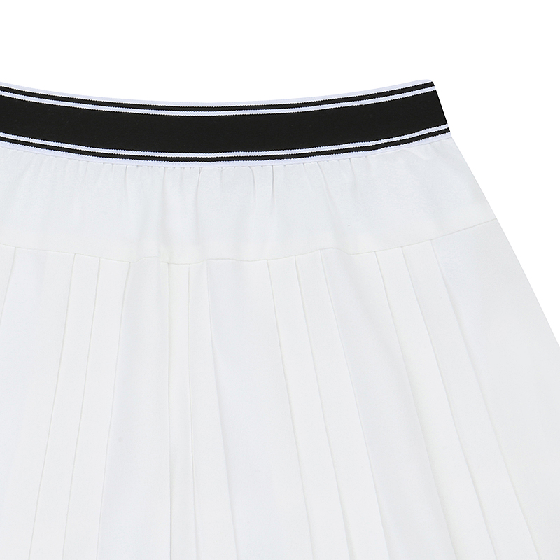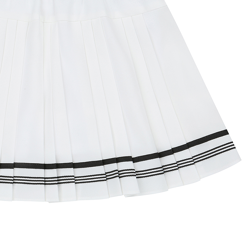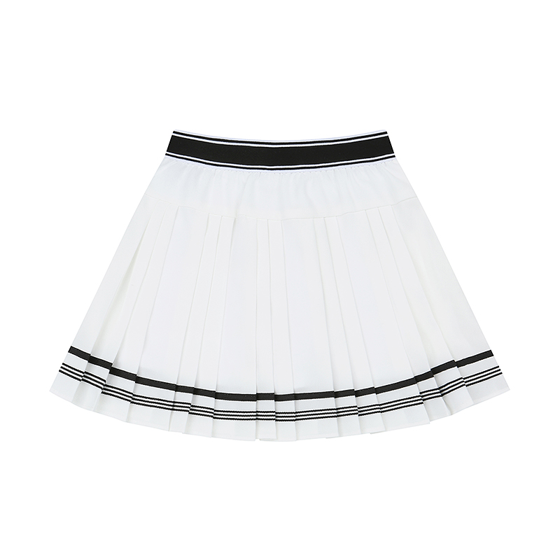 아이보리 변형 주름스커트로 밑단쪽에 배색TAPE가 덧데어 한층더 스타일리쉬함을 더해주며 속바지가 있어 입고 벗기 편한 스커트입니다.