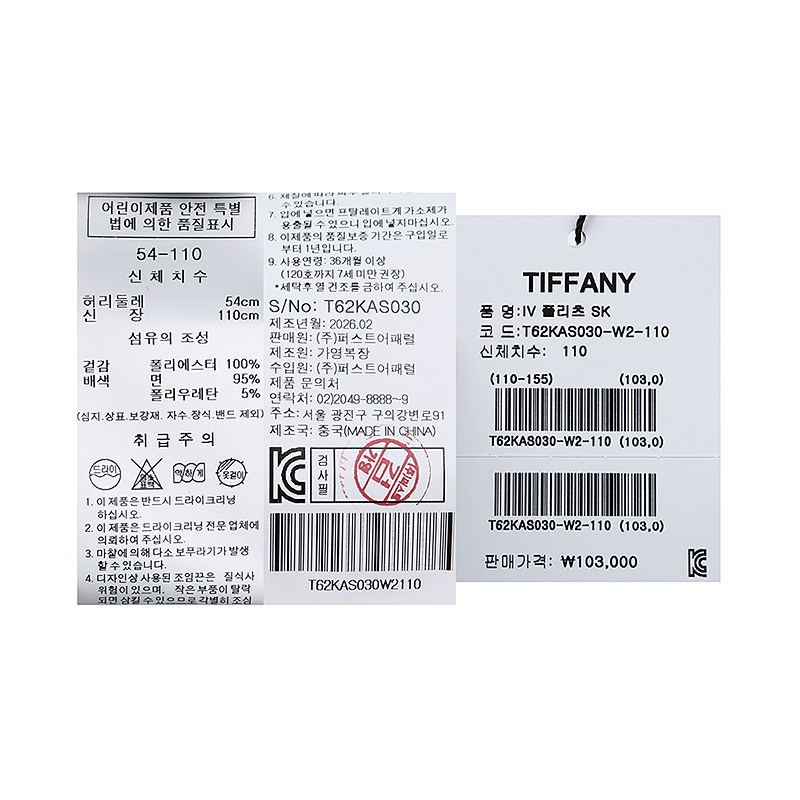 겉감 : 폴리에스터 100 배색 면 95 폴리우레탄 5 -
