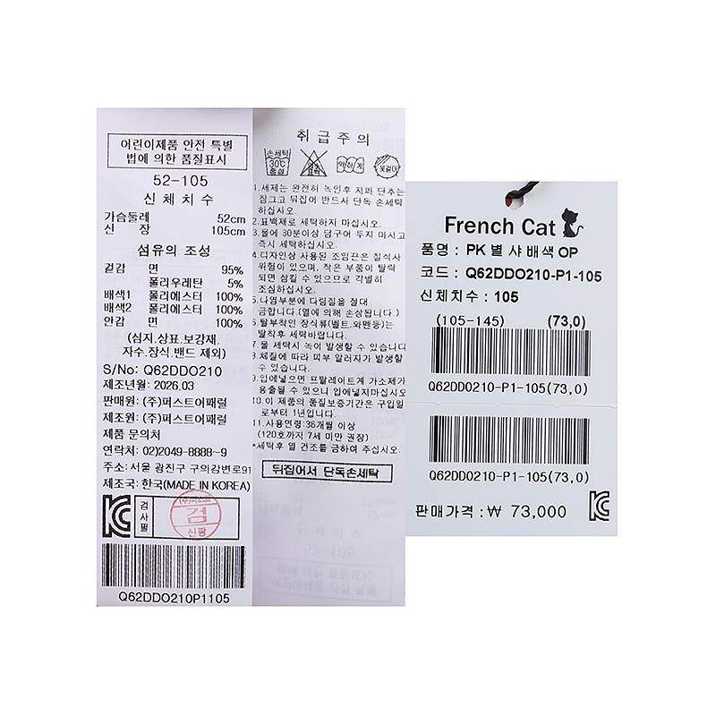 겉감 면95 폴리우레탄5배색1 폴리에스터100배색2 폴리에스터100안감 면100 -