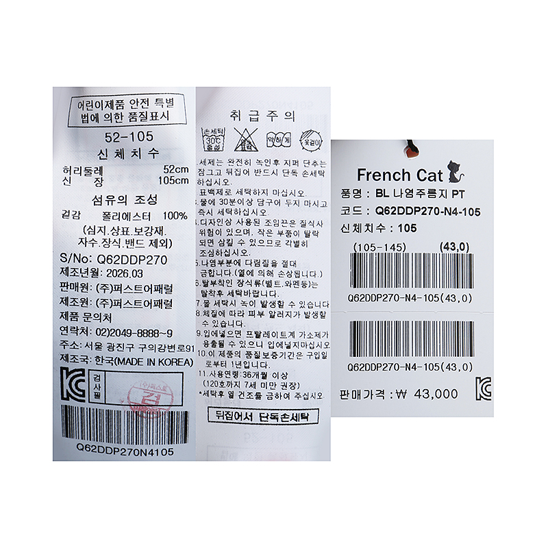 - 배송, 주문/결제, 취소/반품/교환/환불, 회원, 쿠폰/적립금, 이벤트 등의 자세한 문의사항은 고객센터 > 1:1 문의를 이용하여 주시기 바랍니다. 상품에 대한 궁금하신 내용을 문의해주세요.