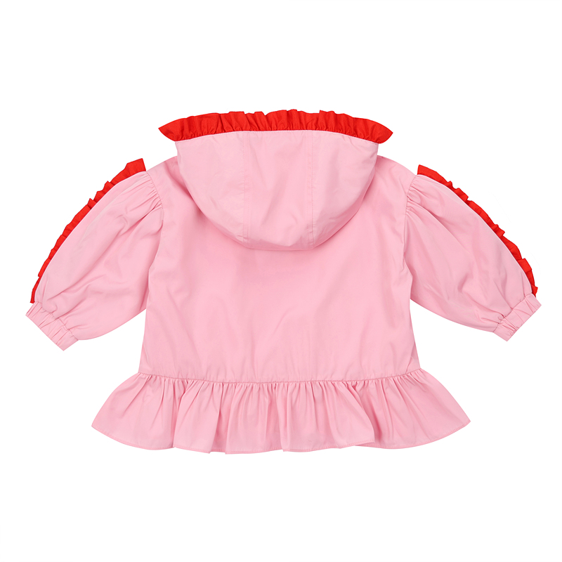 -밑단에는 귀엽고 발랄하게 프릴이있고 후드와 소매에는 레드 프릴장식으로 귀엽고 사랑스러운 느낌을 주어요.