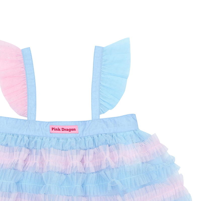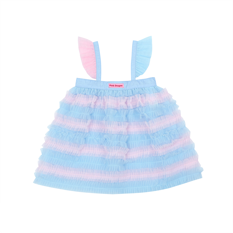 -부드럽고 가벼운 샤원단에 블루 핑크 샤프릴이 있는 원단을 사용한 블루 핑크 레이어드 OP에요.