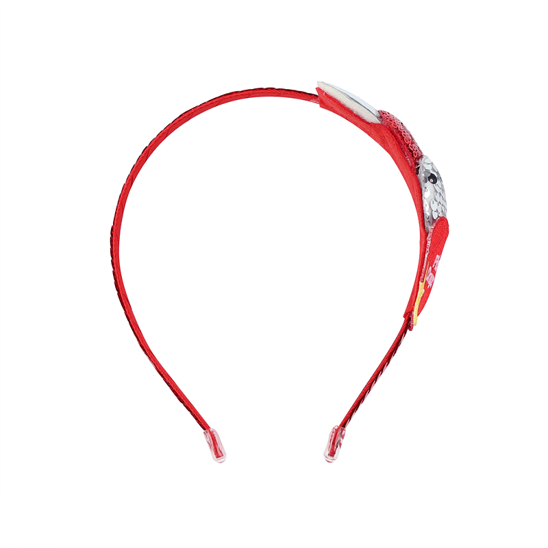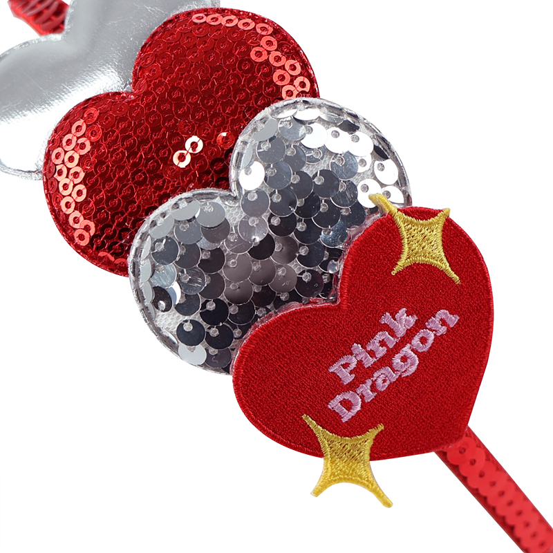 -실버와 레드 스팽글 원단으로 제작한 하트 장식이 들어간 헤어밴드