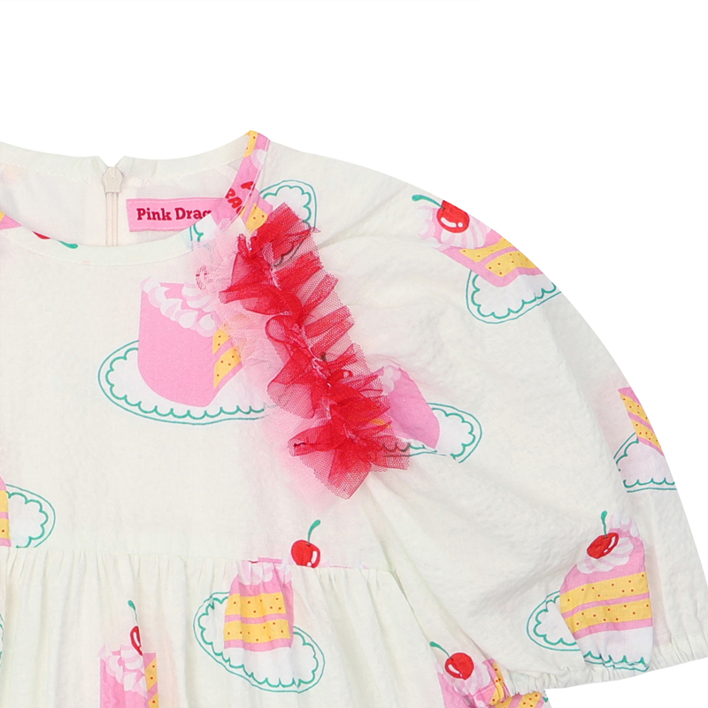 -면100%의 요루지에 케익패턴이 들어가고 착용시 더 편하도록 안감이있고 부드러운 샤 배색 프릴이 들어간 IV 쇼트 케익 패턴OP 에요.