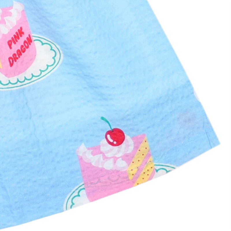 -면100%의 요루지에 케익패턴이 들어가고 착용시 더 편하도록 안감이있고 부드러운 샤 배색 프릴이 들어간 BL 쇼트 케익 패턴OP 에요.