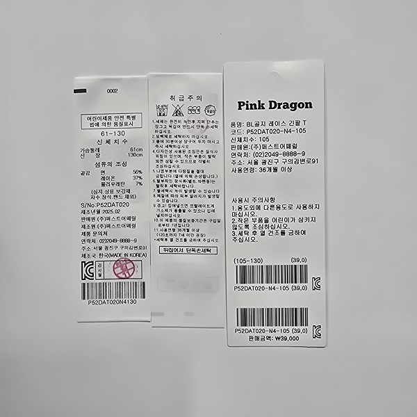 겉감 : 면 56 레이온 37 폴리우레탄 7