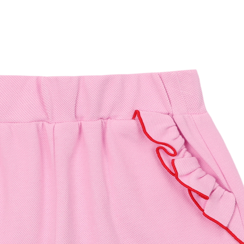 쇼트케이크 자수와 주머니 입구의 끝 레드 인터록 프릴이 사랑스러움을 UP!
