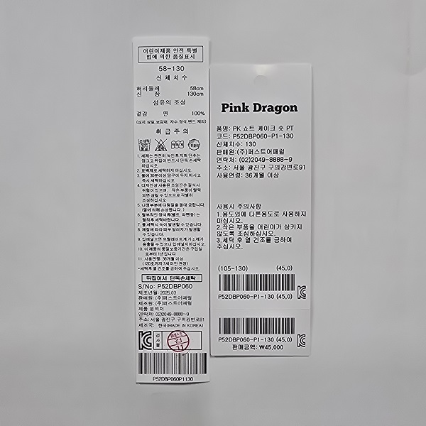 겉감 : 면 100 -