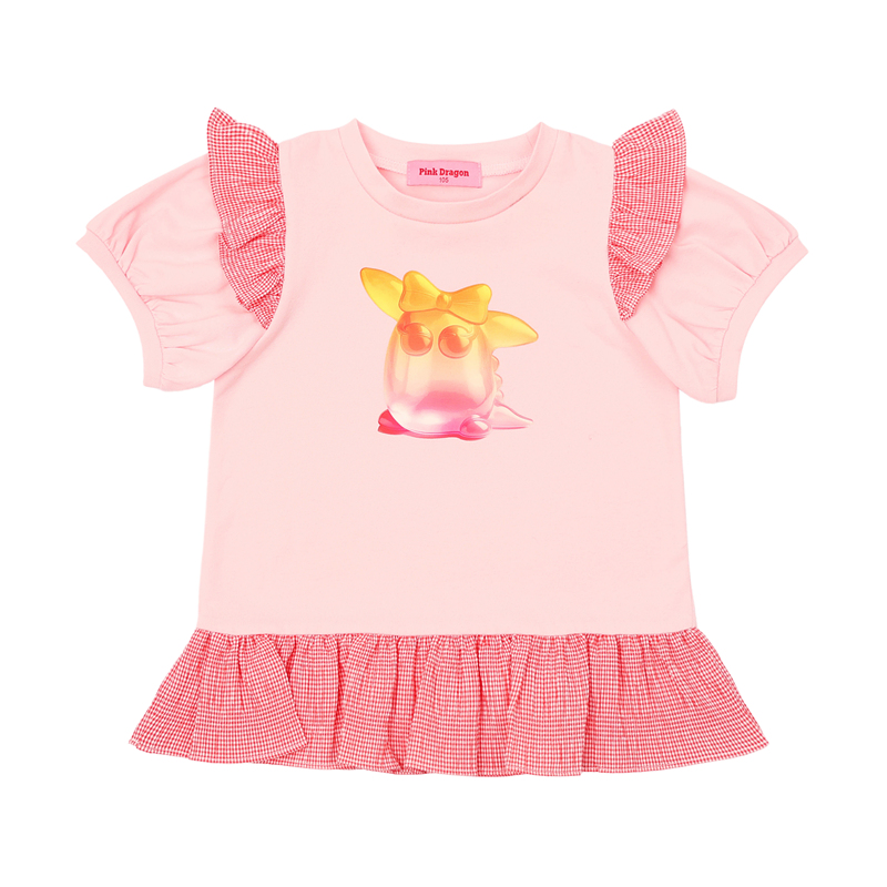 -살짝 롱한 기장감에 소매와 밑단에 체크로 배색을 더하였고 앞판 핑크드래곤 젤리 실사나염으로 유니크해요.