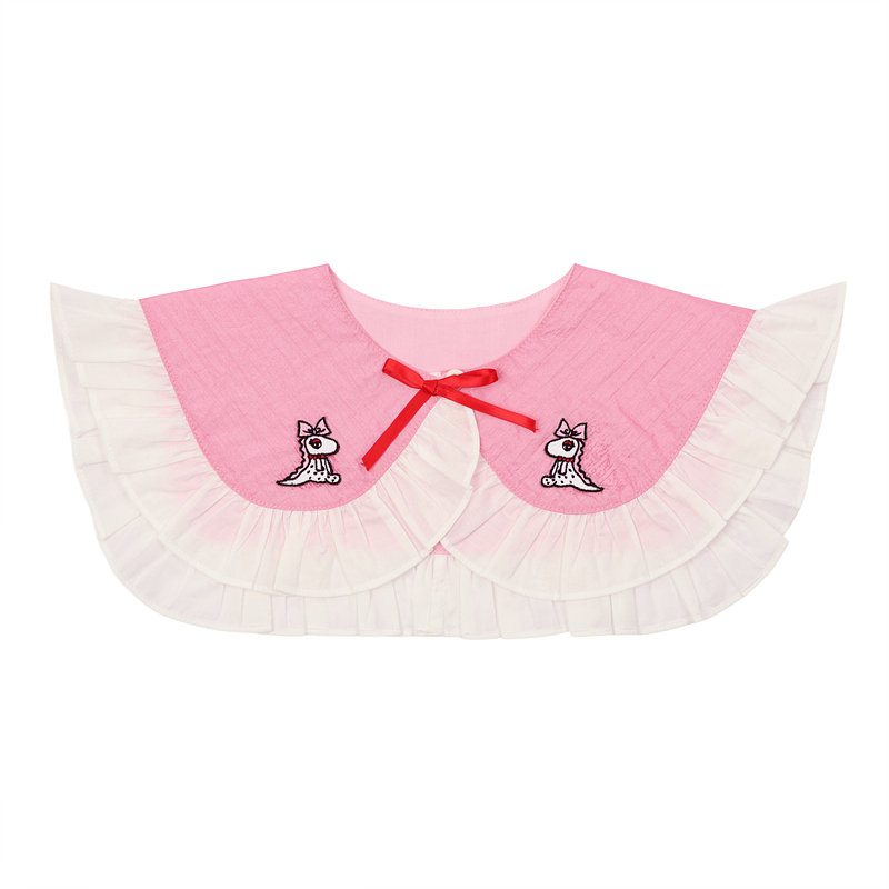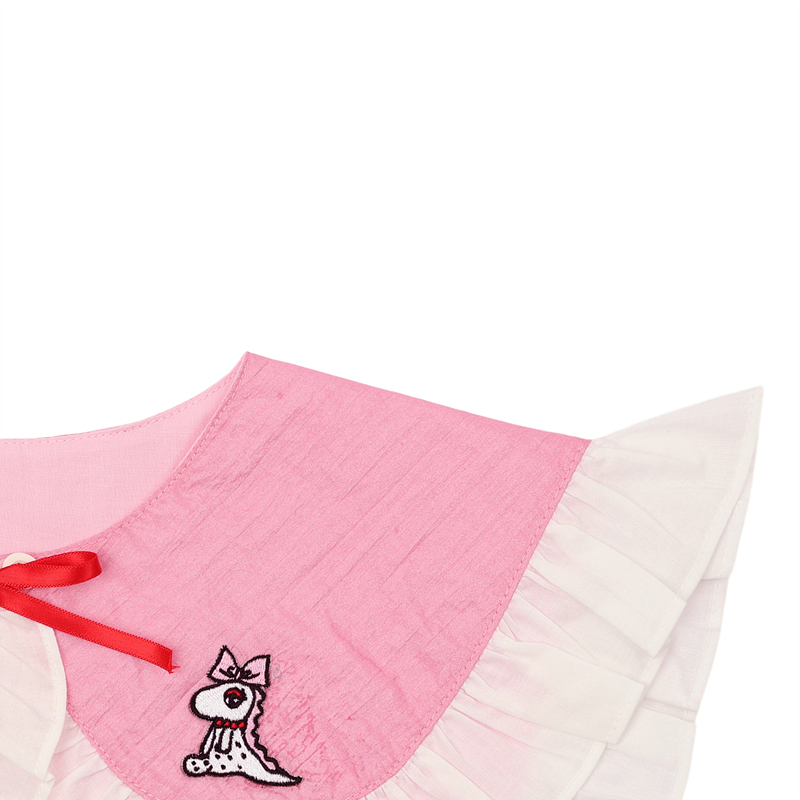-화이트 프릴과 앞판 별드래곤 자수 리본 장식이 사랑스러워요. 안 쉘파고리+단추로 착장이 간편해요.