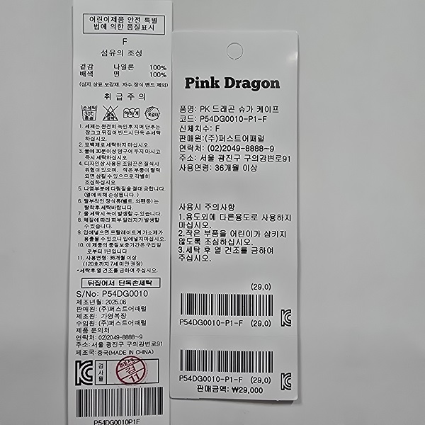 -소프트하고 가벼운 화섬원단을 사용한 PK 드래곤 슈가 케이프에요.