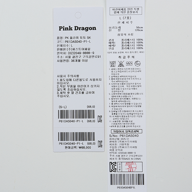 겉감 : 폴리에스터 100 배색 1 폴리에스터 100 배색 2 폴리에스터 100 안감 폴리에스터 100 -