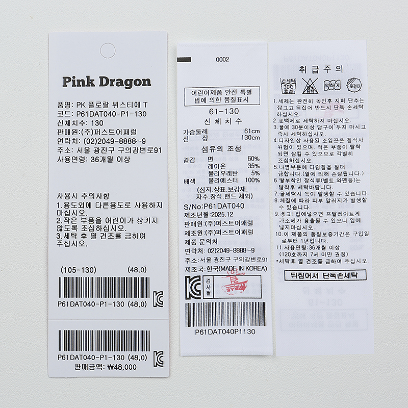 겉감 : 면 60 레이온 35 폴리우레탄 5 배색 폴리에스터 100 -