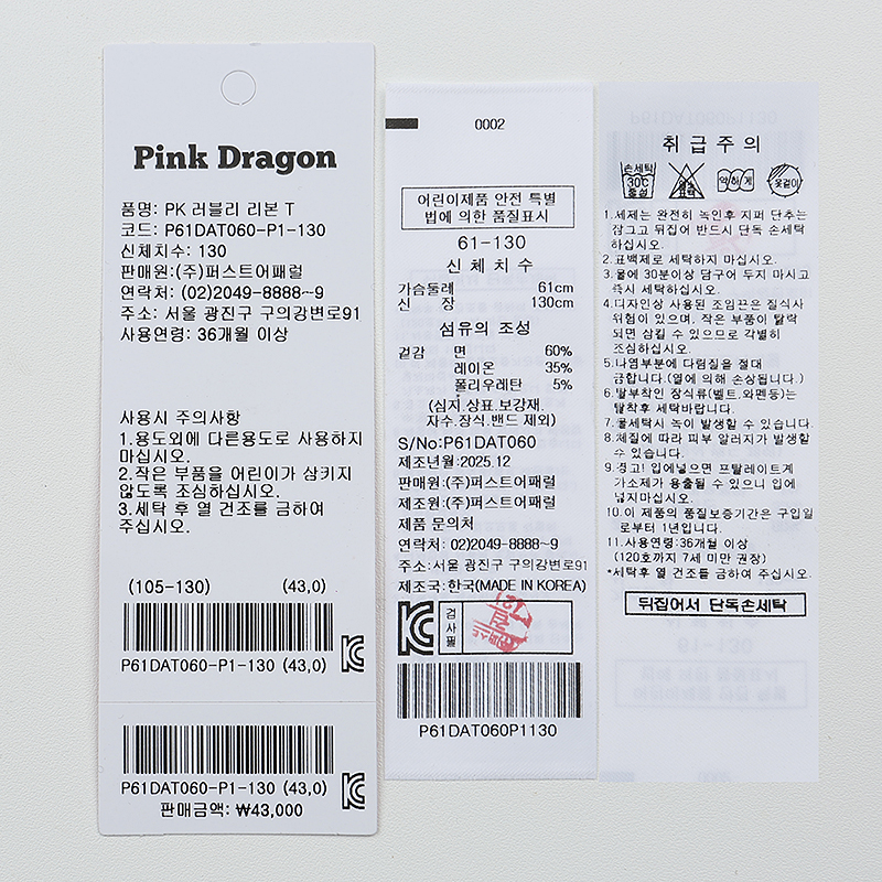 겉감 : 면 60 레이온 35 폴리우레탄 5 -