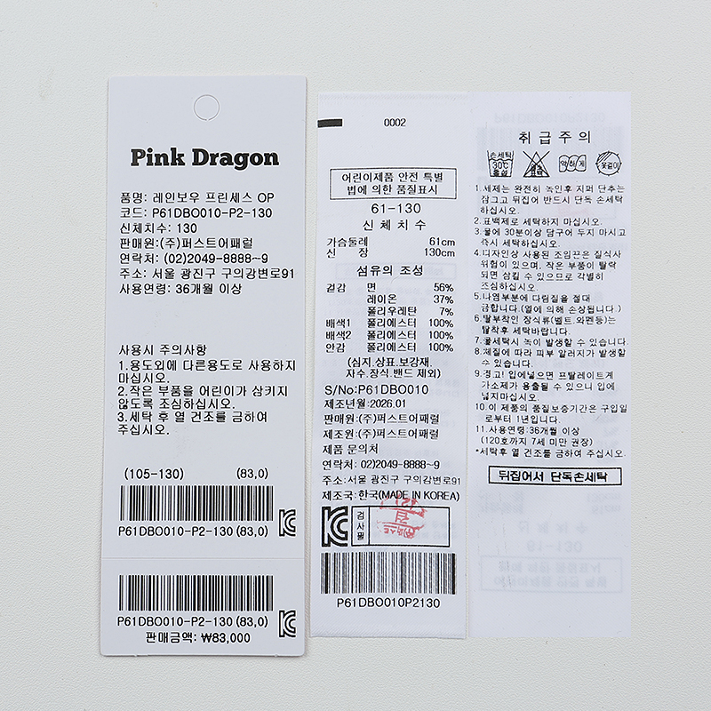 겉감 : 면 56 레이온 37 폴리우레탄 7 배색 1 폴리에스터 100 배색 2 폴리에스터 100 안감 폴리에스터 100 -