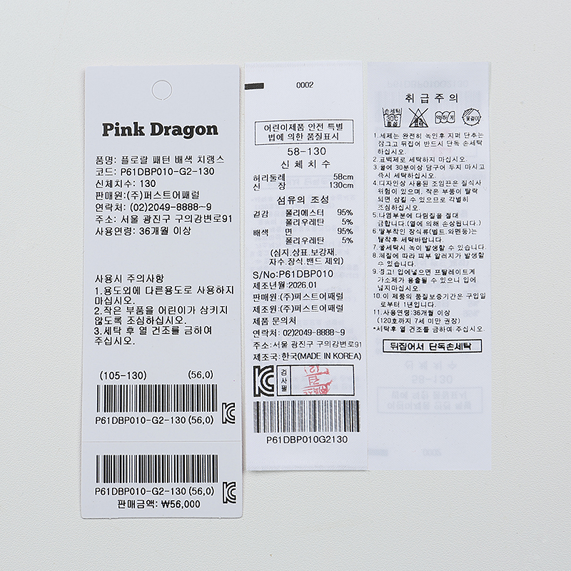 겉감 : 폴리에스터 95 폴리우레탄 5 배색 면 95 폴리우레탄 5 -