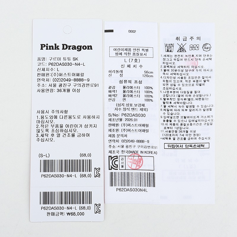 - 배송, 주문/결제, 취소/반품/교환/환불, 회원, 쿠폰/적립금, 이벤트 등의 자세한 문의사항은 고객센터 > 1:1 문의를 이용하여 주시기 바랍니다. 상품에 대한 궁금하신 내용을 문의해주세요.