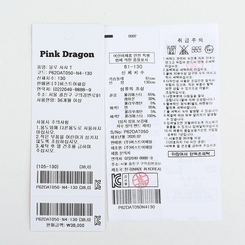 겉감 : 폴리에스터 65 레이온 30 폴리우레탄 5 배색 1 면 95 폴리우레탄 5 배색 2 폴리에스터 100