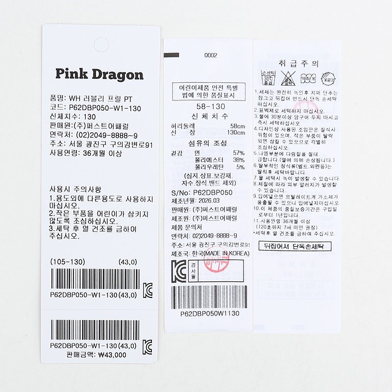 겉감 : 면 57 폴리에스터 38 폴리우레탄 5 -