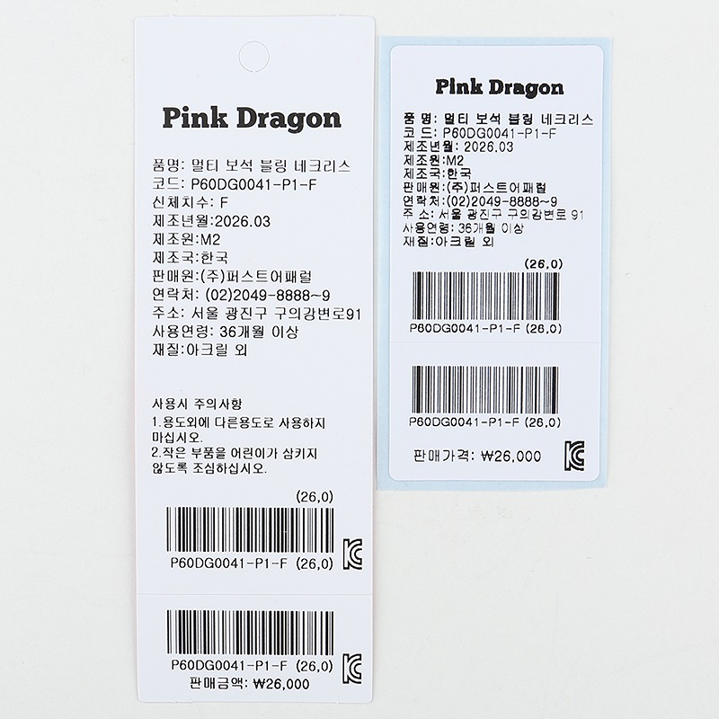 - 배송, 주문/결제, 취소/반품/교환/환불, 회원, 쿠폰/적립금, 이벤트 등의 자세한 문의사항은 고객센터 > 1:1 문의를 이용하여 주시기 바랍니다. 상품에 대한 궁금하신 내용을 문의해주세요.