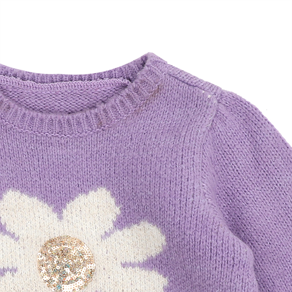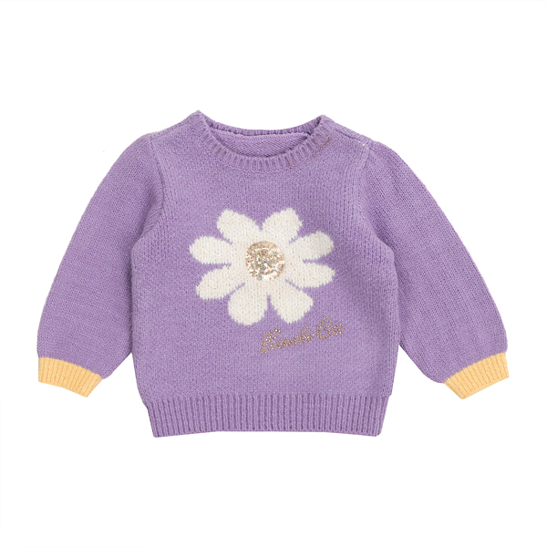 앞판에 쟈가드로 꽃 포인트를 준 니트 풀오버 입니다.