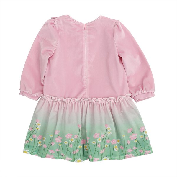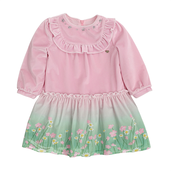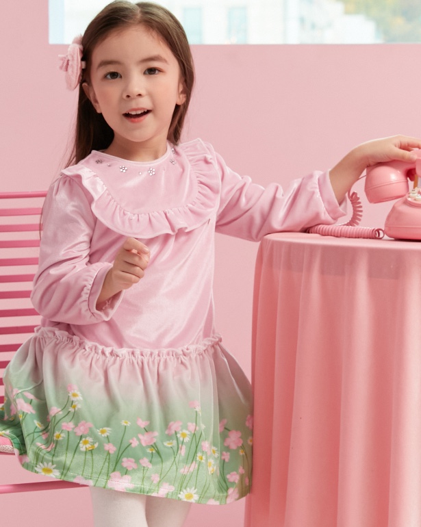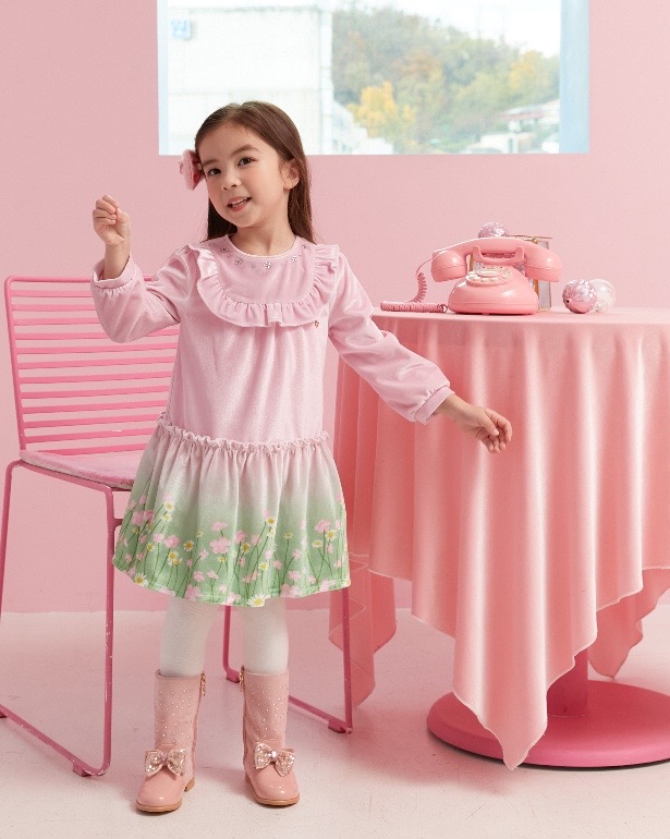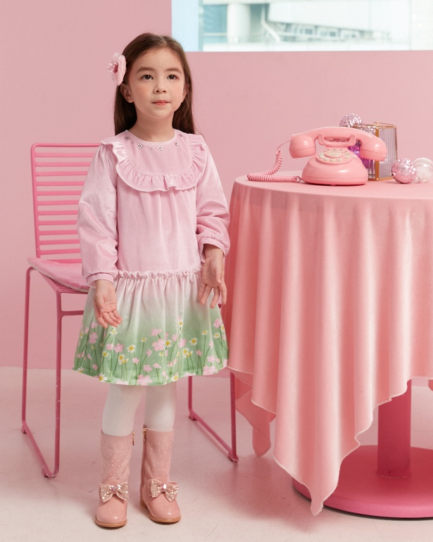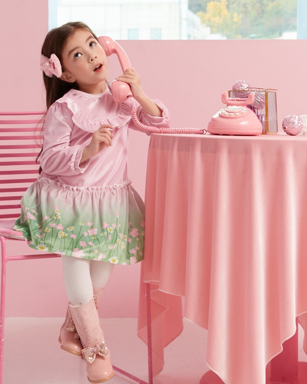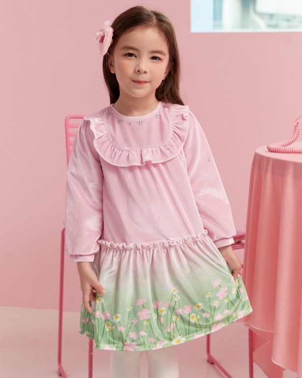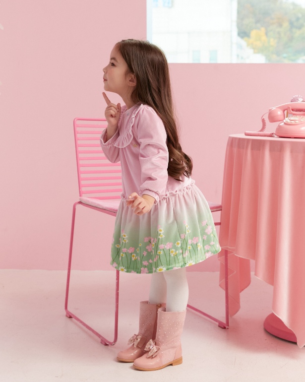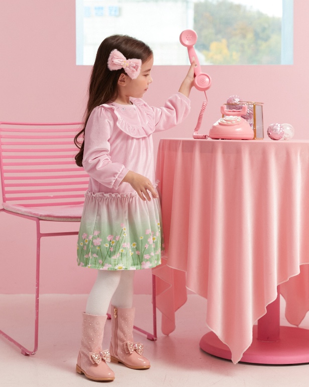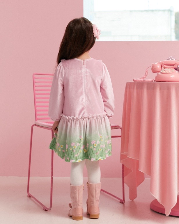 그린톤에 핑크꽃이 피어오르는 듯한 꽃무늬에 전체적으로 그린과 핑크가 이어지는 그라데이션 무드의 프린트를 사용한 벨로아 원피스입니다. 한장한장 프린트에 맞춤 재단하는 공정을 들인 제품으로 귀여운 프릴장식과 네크라인을 따라 꽃모양 핫피스 장식이 포인트가 되는 제품입니다. 보들보들하고 찰랑한 원피스로 MT 핸드메이드CT와 함께 코디하여 차분하면서도 고급스런 연출에 좋은 아이템이 될 것입니다.