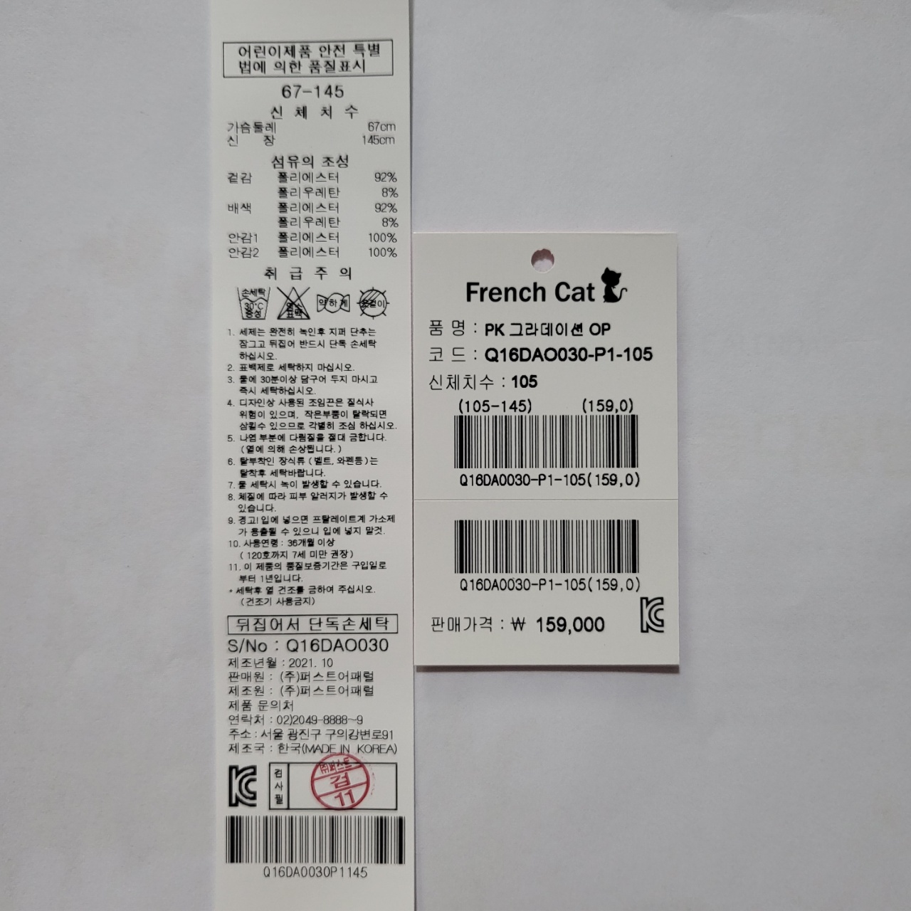 넘 예쁘네요~ 정사이즈같아요 잘입을게요~~!