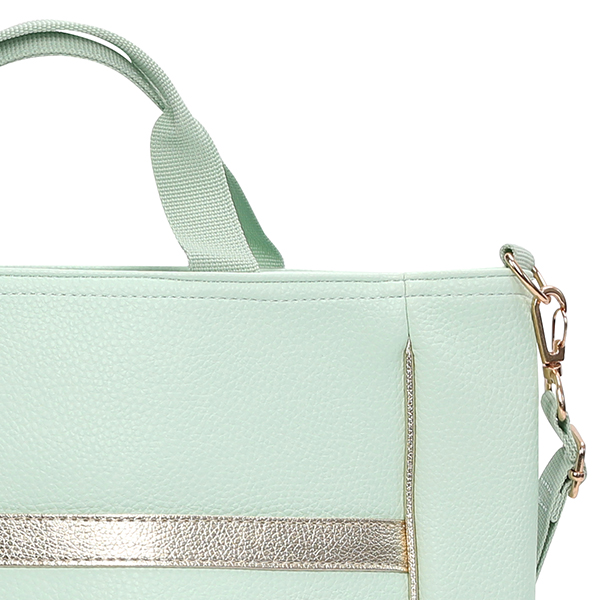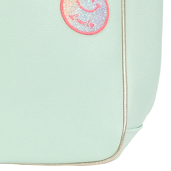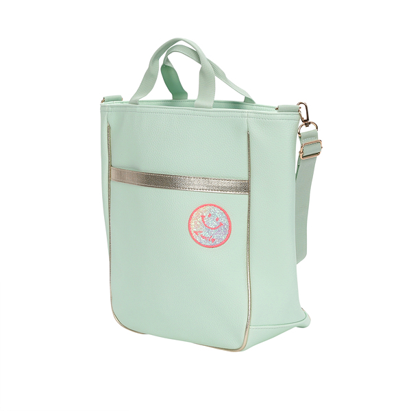 민트 컬러 바디에 골드 포인트를 준 보조가방입니다. 학원갈 때 보조 가방이나 학교에서 실내화 주머니로 다양하게 사용 가능합니다. 끈 탈부착으로 크로스로도 착용 가능하며 안쪽에 별도 주머니가 있어 실내화 넣을 때와 별도 사용할 때 구분하여 사용 가능합니다. 앞쪽에 오로라 펄 스마일 와펜 장식이 있어 포인트를 줍니다.
